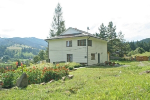 Двоповерховий будинок на 5 номерів (15 місць). На першому поверсі — кухня (кухонне вогнище, електрична плита, холодильник, електрочайник, посуд, мийка);