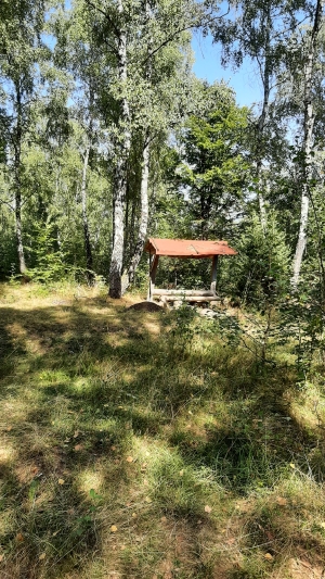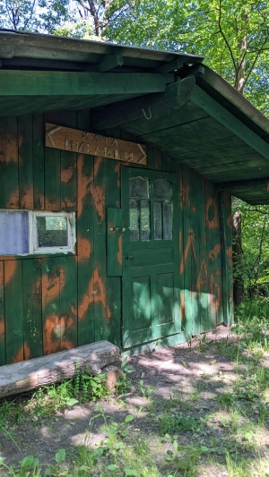 Місце для відпочинку. Стіл на дворі, великий стіл в будинку. Є місце для намету, туалет