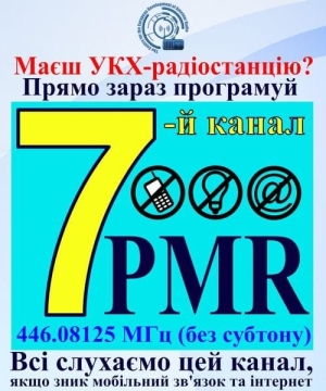 Ще хочу додати частоту, яку рекомендують використовувати в надзвичайних ситуаціях. На випадок відключення інтернету та мобільного зв'язку, що зараз дуже актуально, дивлячись на ситуацію з блекаутами. Або під час евакуації, мобільна мережа може бути просто перевантажена, як це було в перші дні війни. Тому тримайте 7-й канал PMR (446.08125МГц).