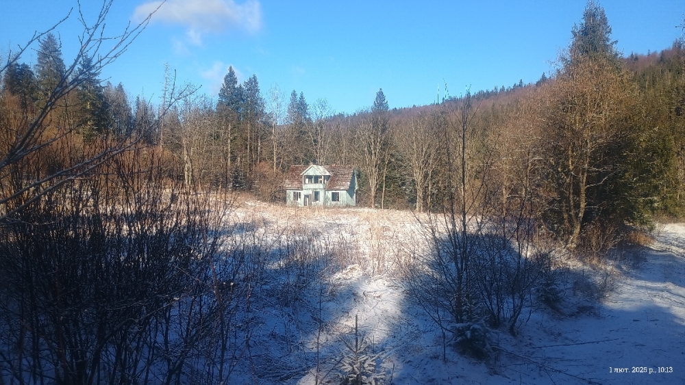 Поляна,+закинута будівля,вода поряд годиться для ночівлі.