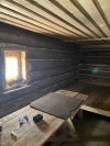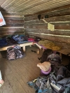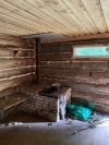 Shelter with 2 fire pits and a stove inside