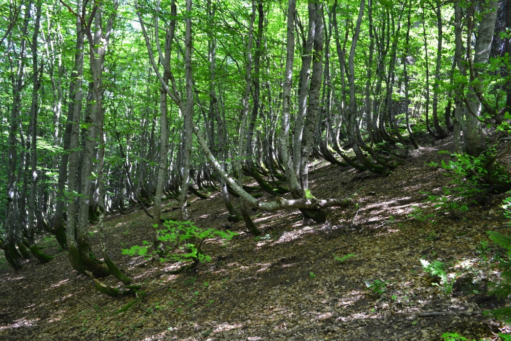 Цікаво ростуть буки на сихилі. Всі дерева в цьому місці знизу зігнуті вбік. Ніби ліс хокейних "клюшок"
