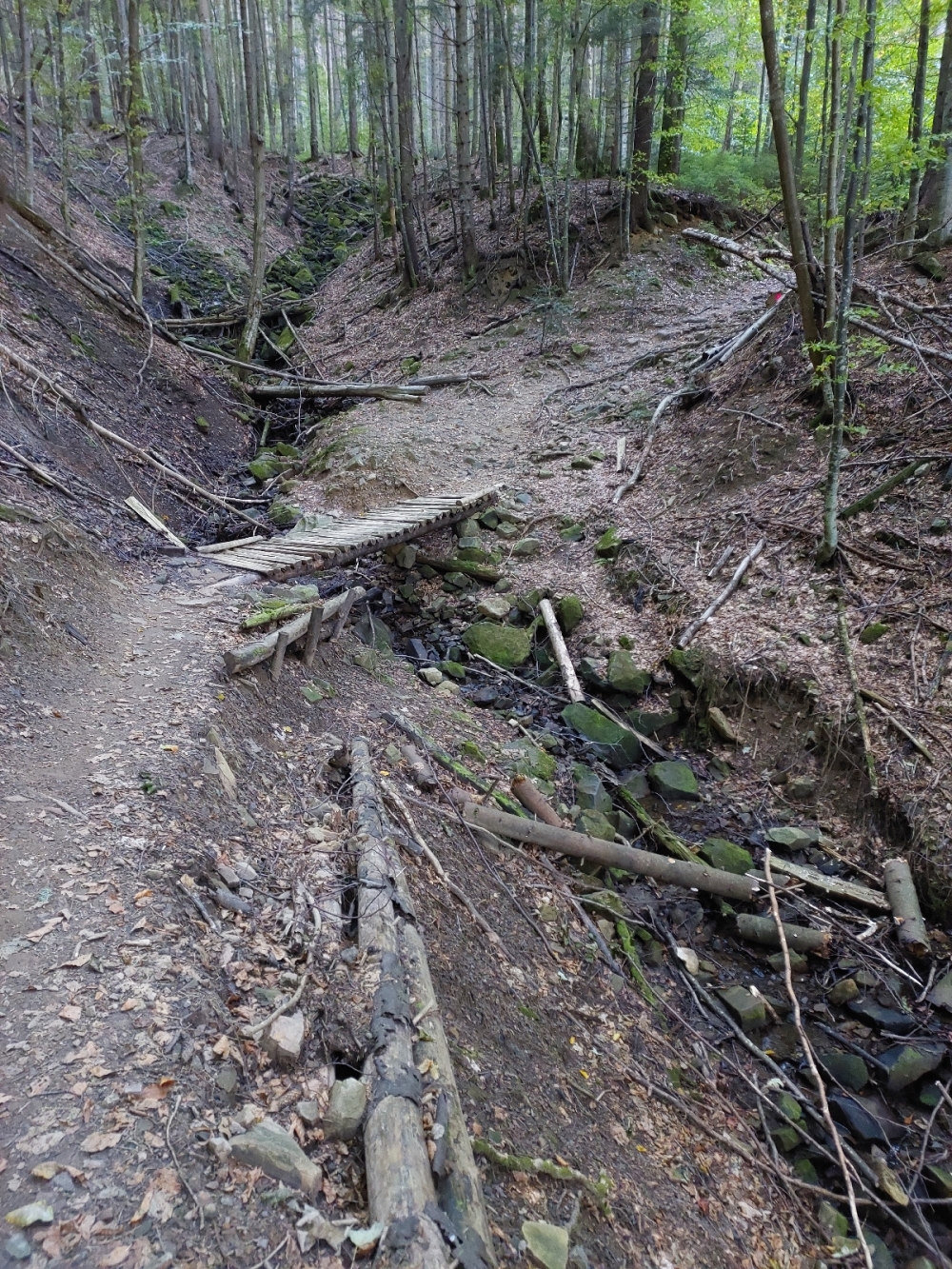 З полонини до Круглого Явірника джипери дуже сильно розкатали дорогу. Після дощу йти неприємно.
